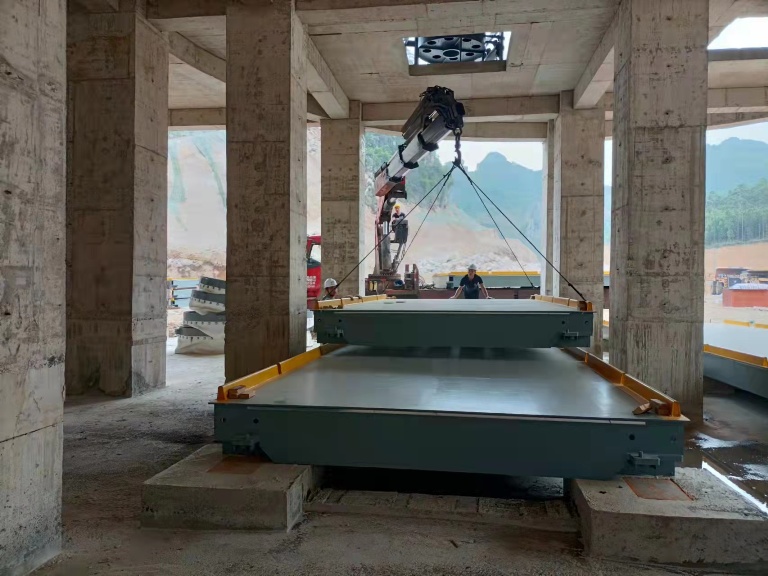 柳州特力汽車衡采用模塊化軸銷搭接,以便秤臺(tái)之間可以搭接互換,便于秤體現(xiàn)場(chǎng)安裝。限位采用縱向與橫向結(jié)合的方式,保證秤體縱向、橫向不移位。